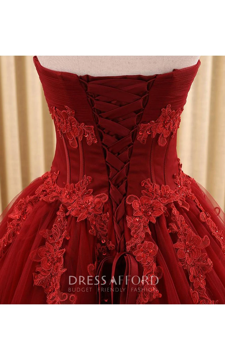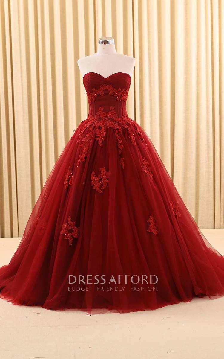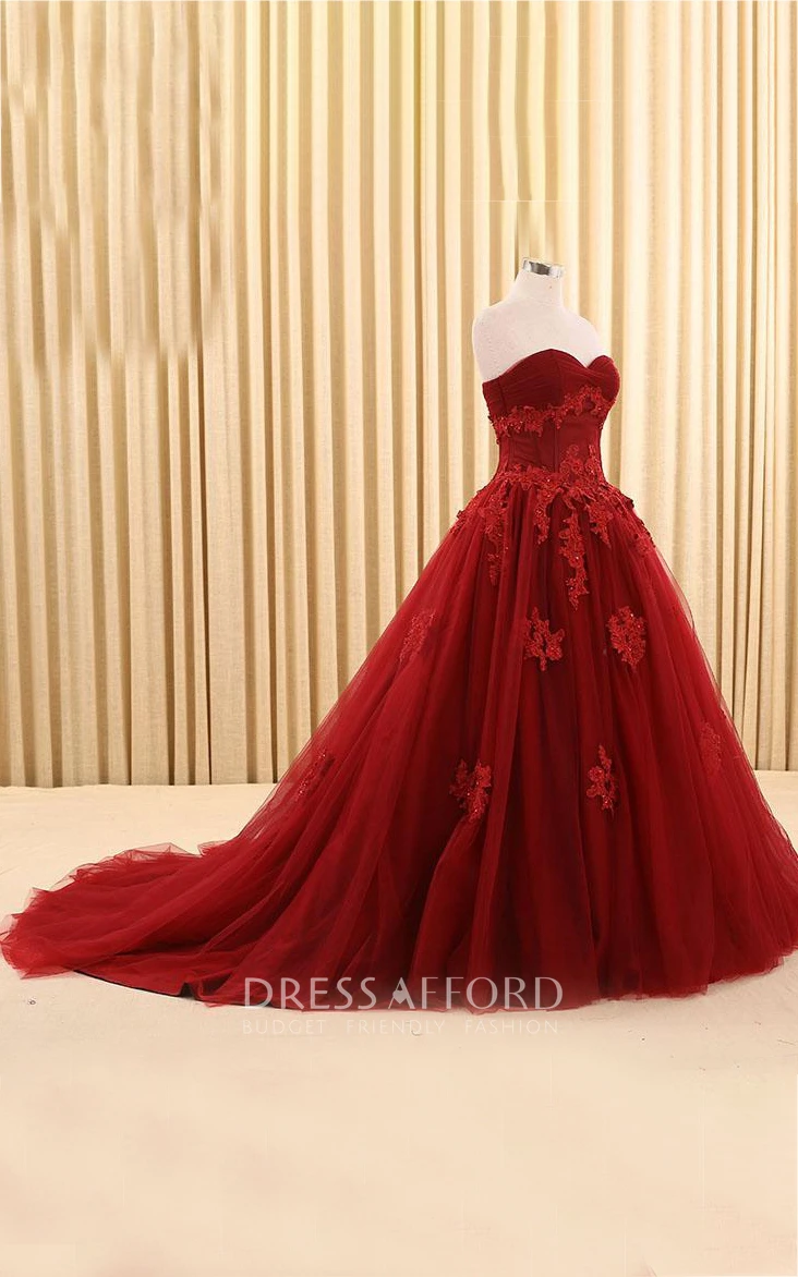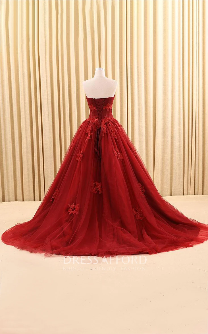 Sweetheart Appliqued Sweep-Train Tulle Corset Lace Ball Gown