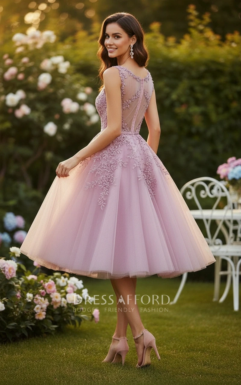 Pearl Appliqué Tea-Length Dress