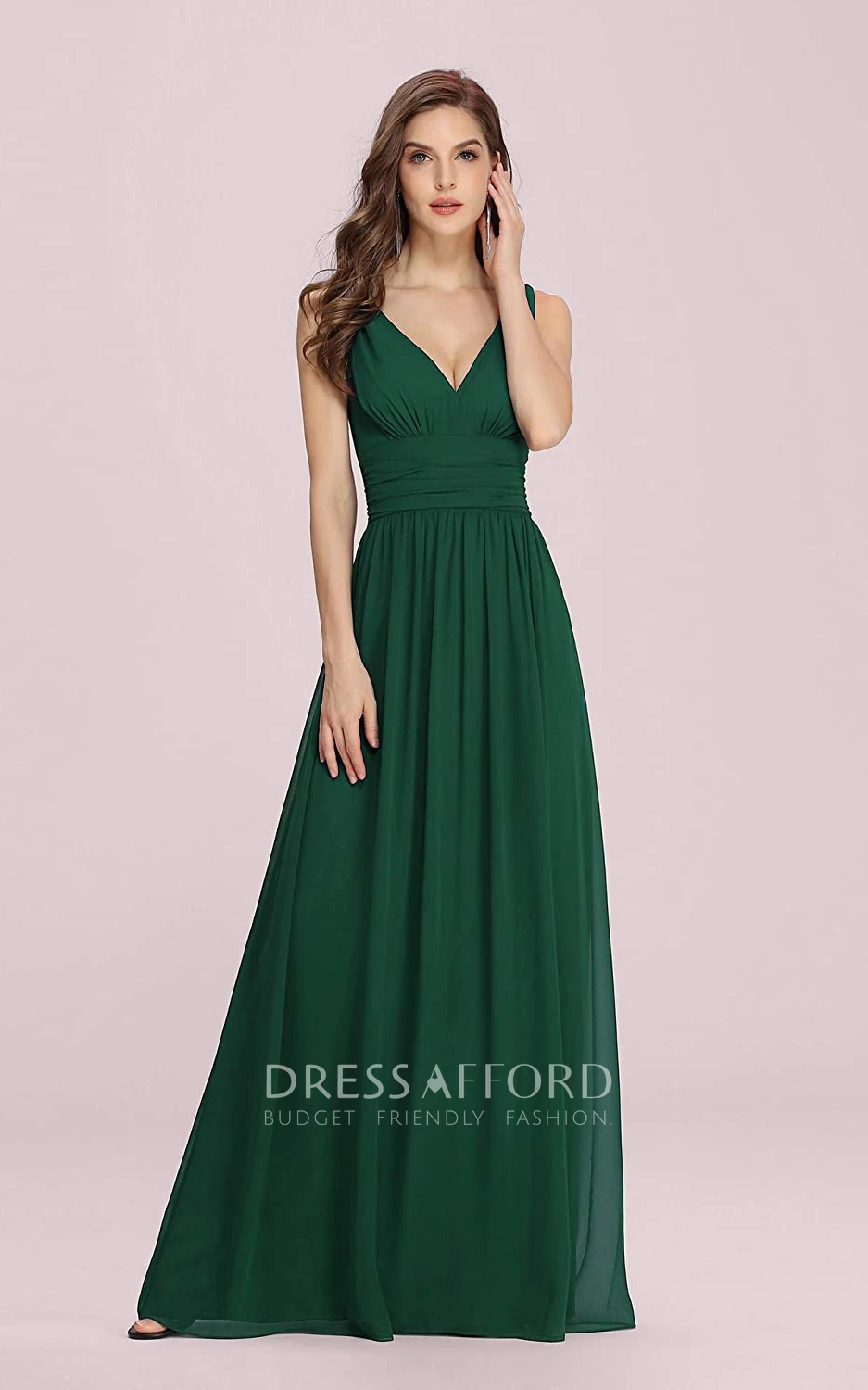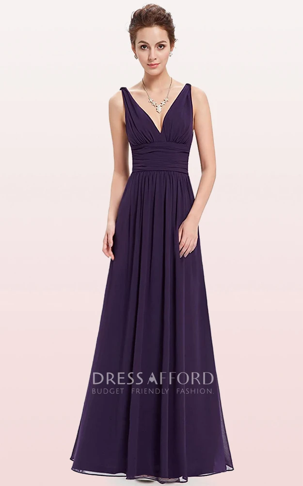 Sexy V-neck Chiffon A Line Sleeveless Prom Dress With Ruffles